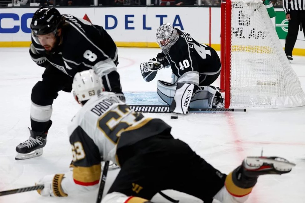 However, once again, just under three minutes into the period, Kings defenseman Drew Doughty took a shot from the blue line that flew past Brossoit for a powerplay goal to put the Kings up 5-1. The goal came while Martinez was in the box and stood as Doughty’s fourth point of the night. The four points matched him with Kopitar at that point.
